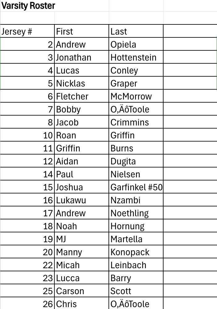 Boys Soccer Roster