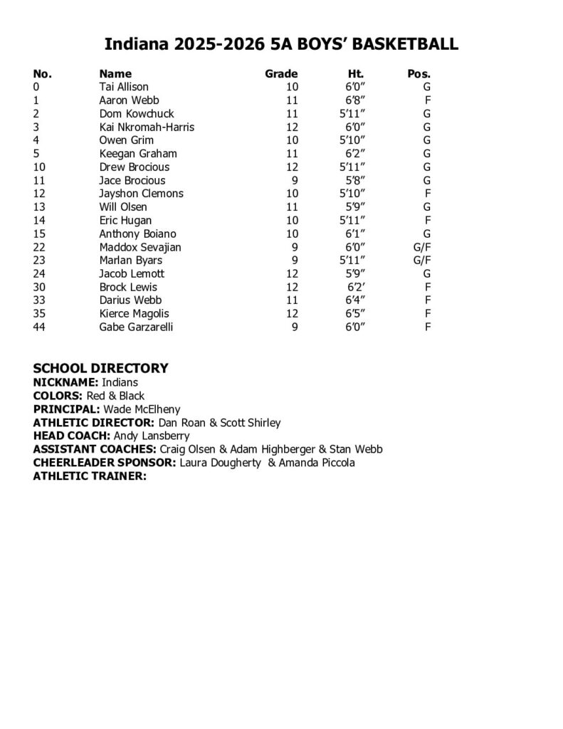 Boys Basketball Roster