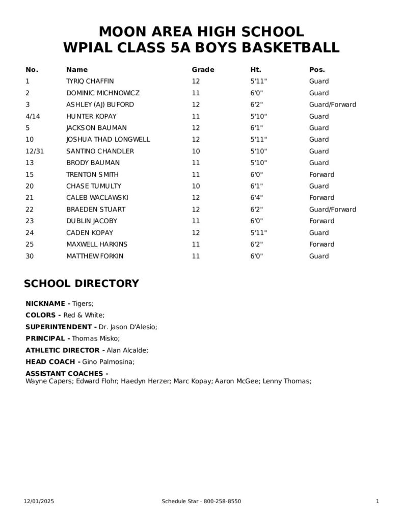 Boys Basketball Roster