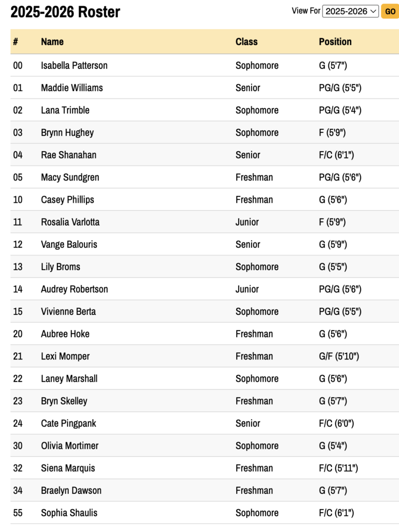 Girls Basketball Roster