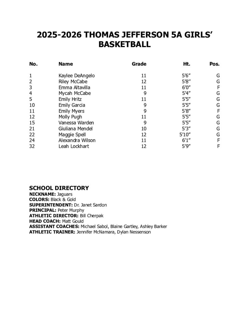 Girls Basketball Roster